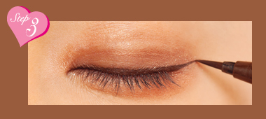 リキッドアイライナーでインラインを。目頭は丸めに。